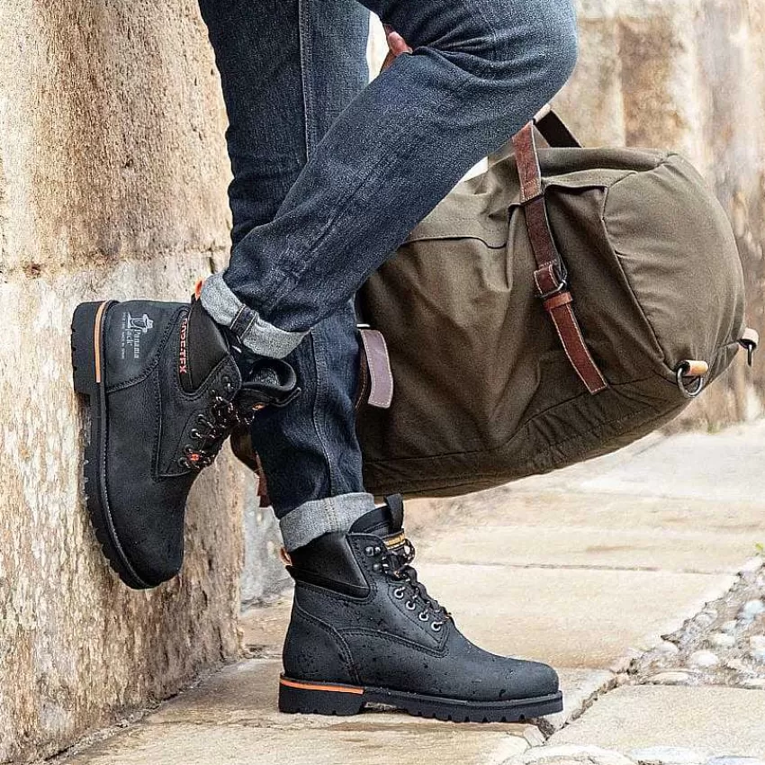Botas Lisas HombreCierre Con Cordones.Piel Nobuck Negro Impermeable.Forro Gore-Tex®.Li>Plantilla Anatómica Y Extraíbl…