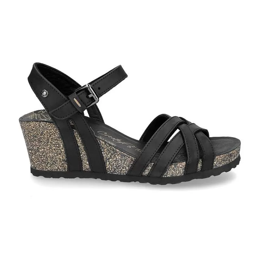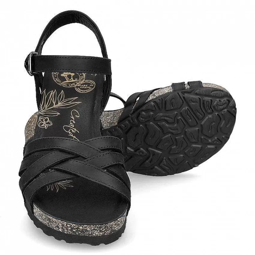 Sandalias Con CuñaCierre Con Hebilla.Piel Napa Engrasada Negro.Forro De Piel.Plantilla Anatómica. Suela De Eva Adheren…