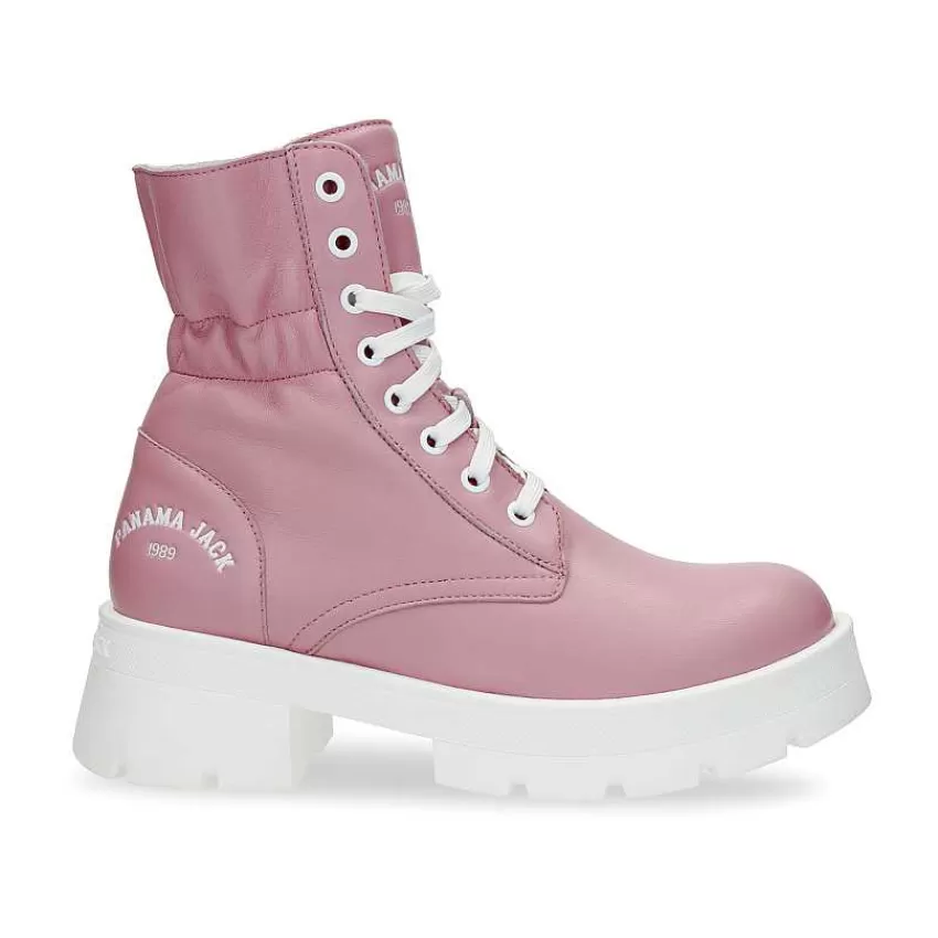 Botas Mujer Con TacónCierre Con Cordones.Piel Napa Rosa.Forro Tejido.Anatómicas Y Extraíbles Plantilla.Suela Tr De Go…
