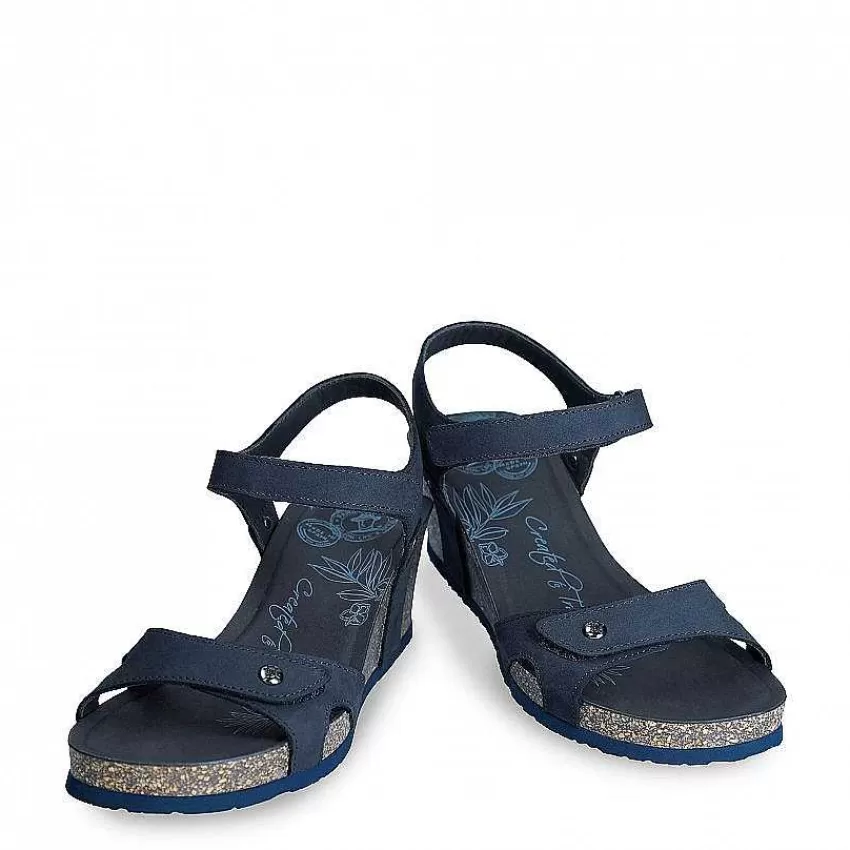 Sandalias De CuñaCierre De Velcro.Piel Nobuck Azul Marino Impermeable.Forro De Piel. Plantilla Anatómica.Suela De Eva …