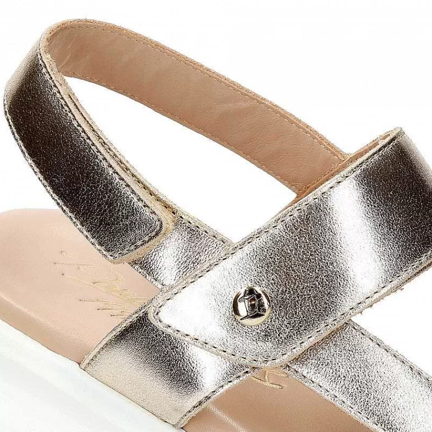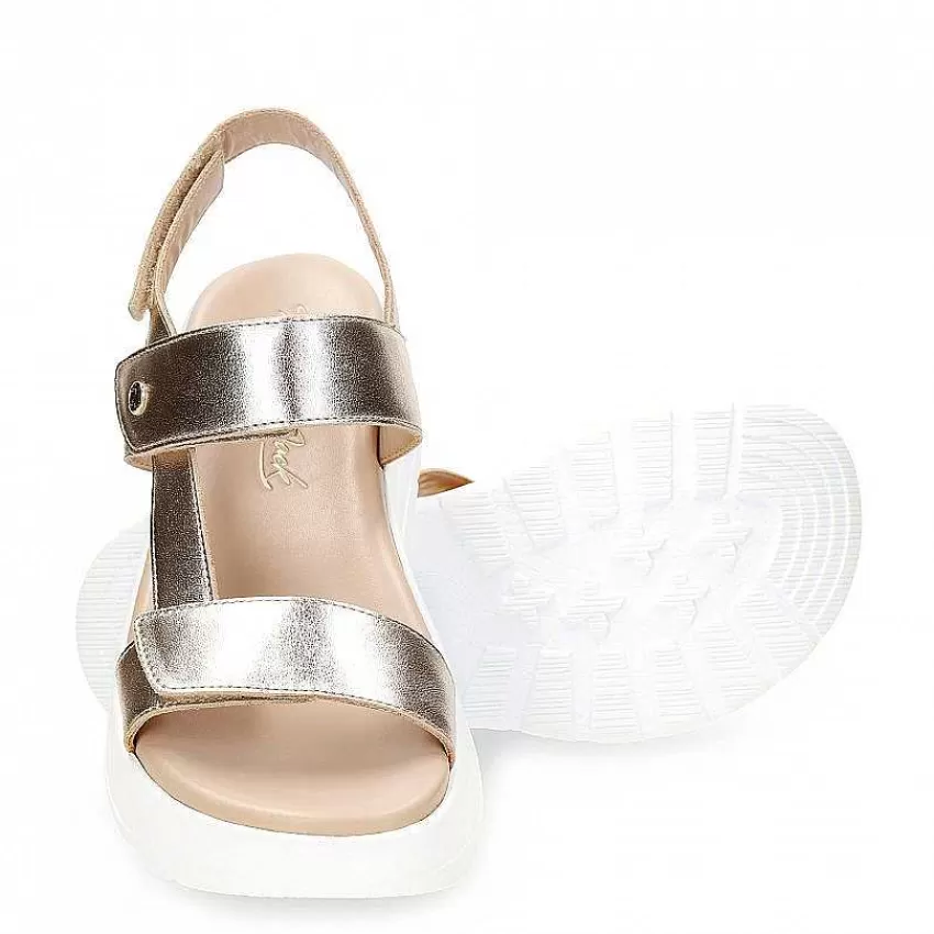 Sandalia Plana MujerCierre De Velcro.Piel Napa En Color Dorado.Forro De Piel.Plantilla Anatómica. Suela De Poliuretano …