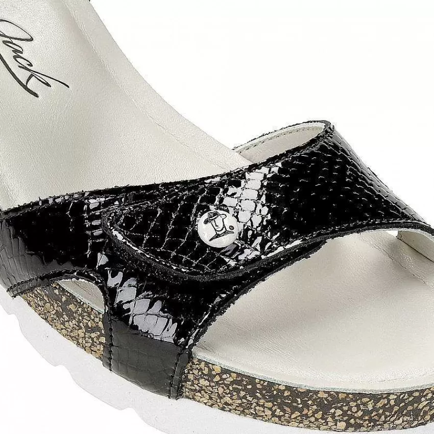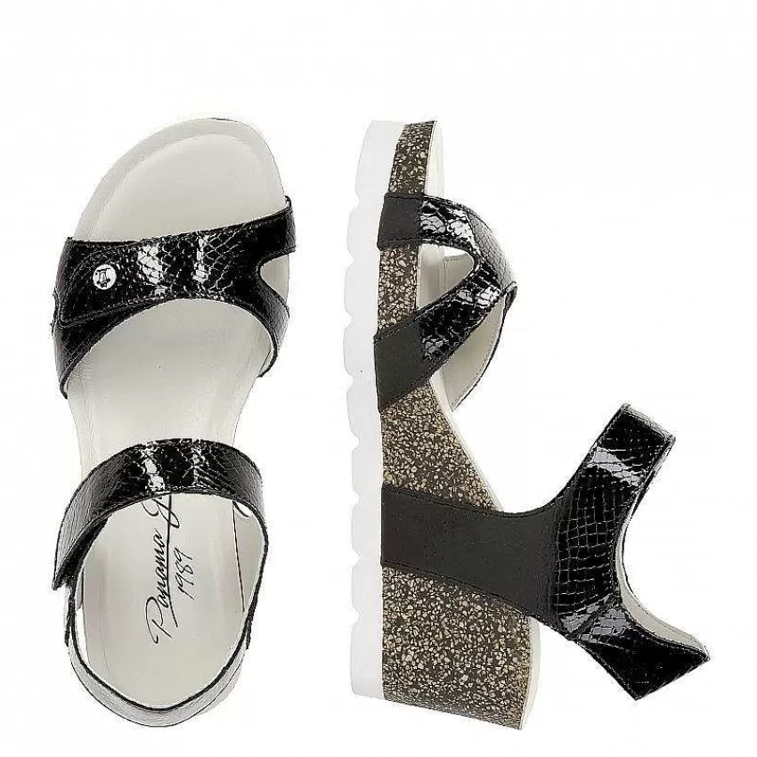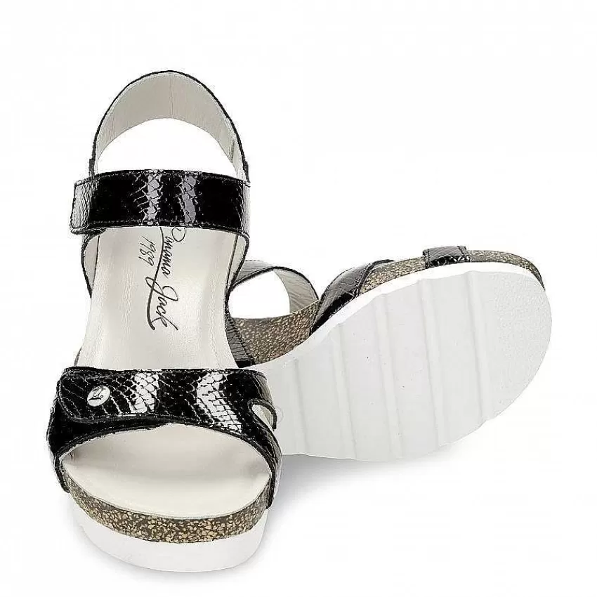 Sandalias CuñaCierre De Velcro.Charol Negro.Forro De Piel.Plantilla Anatómica.