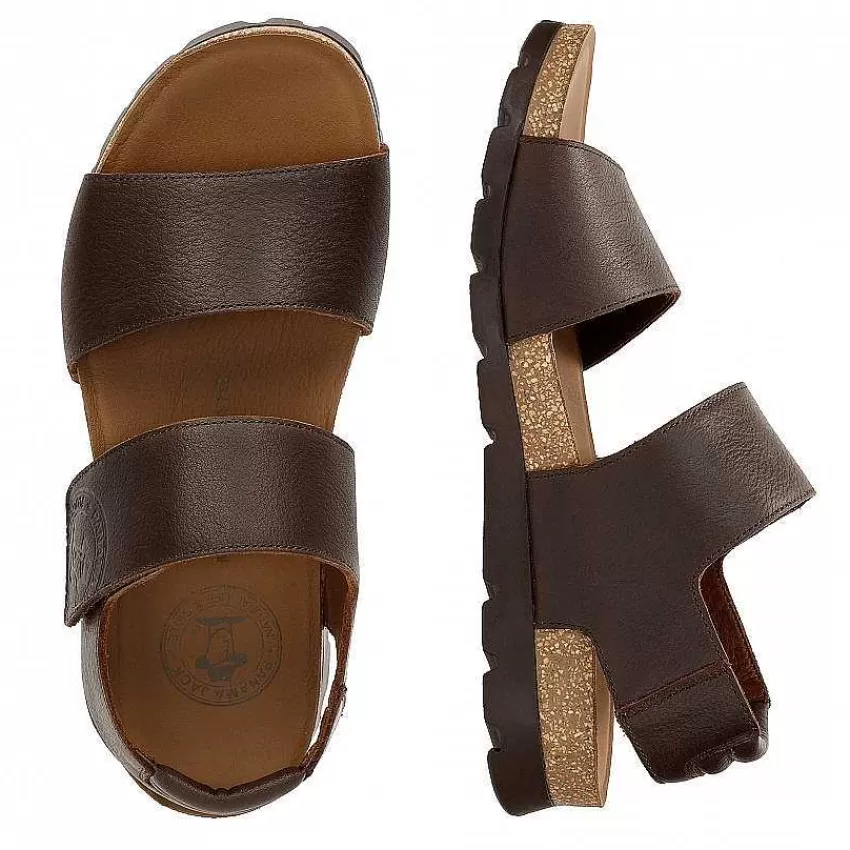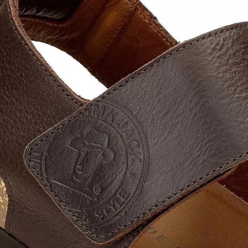 Sandalia HombreCierre De Velcro.Piel Napa Engrasada Marrón Impermeable.Forro De Piel.