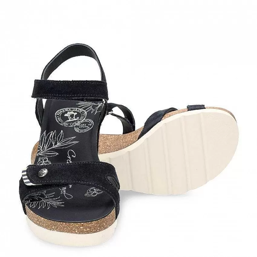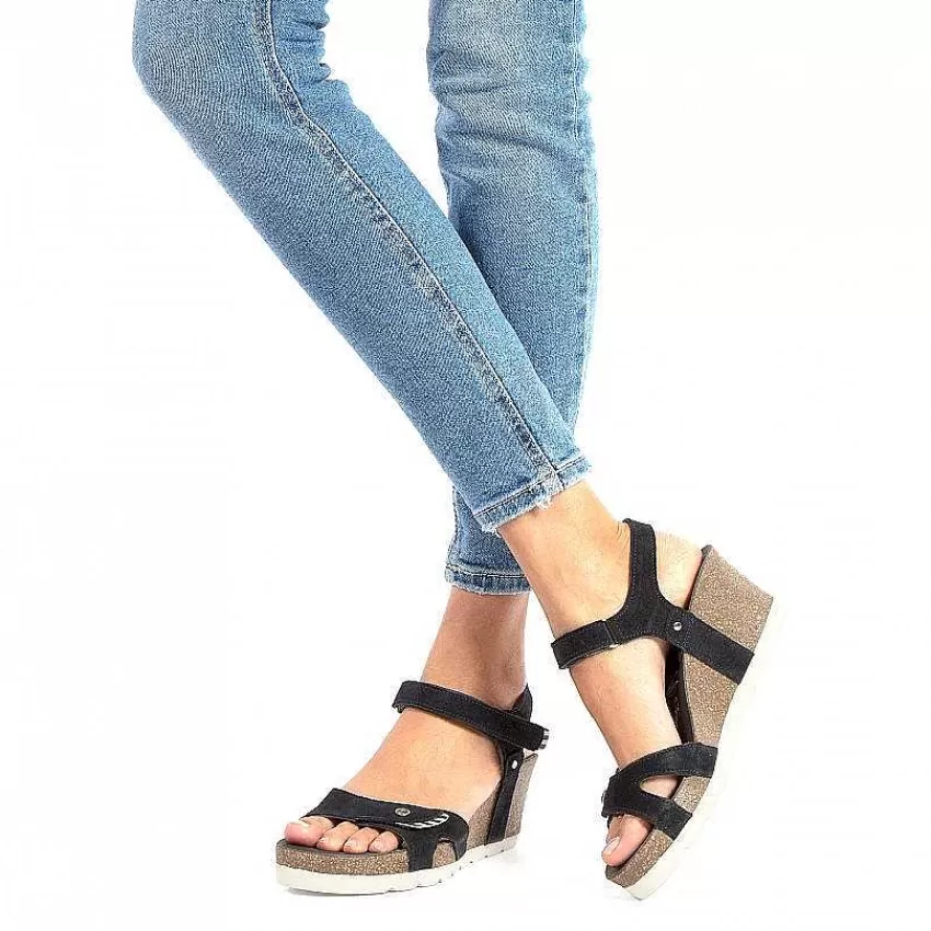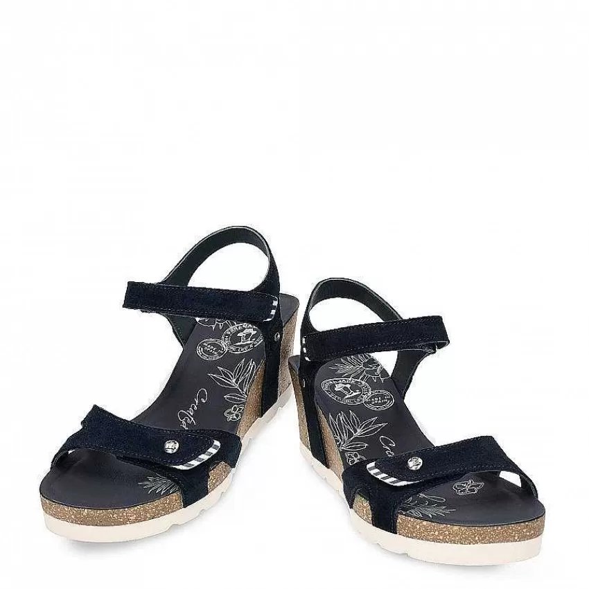 Sandalias De CuñaCierre De Velcro.Gamuza Azul Marino.Forro De Piel.Plantilla Anatómica.