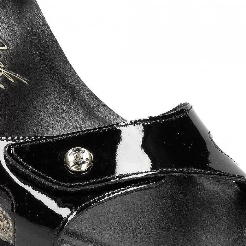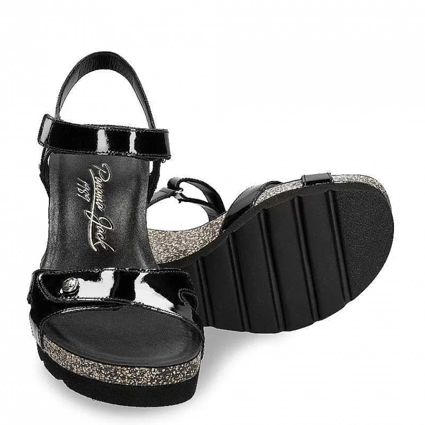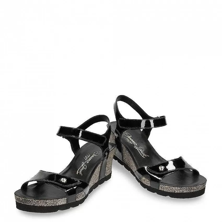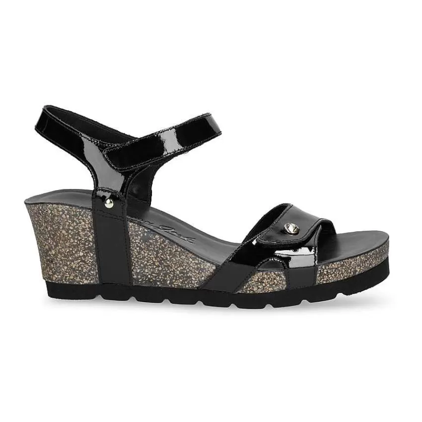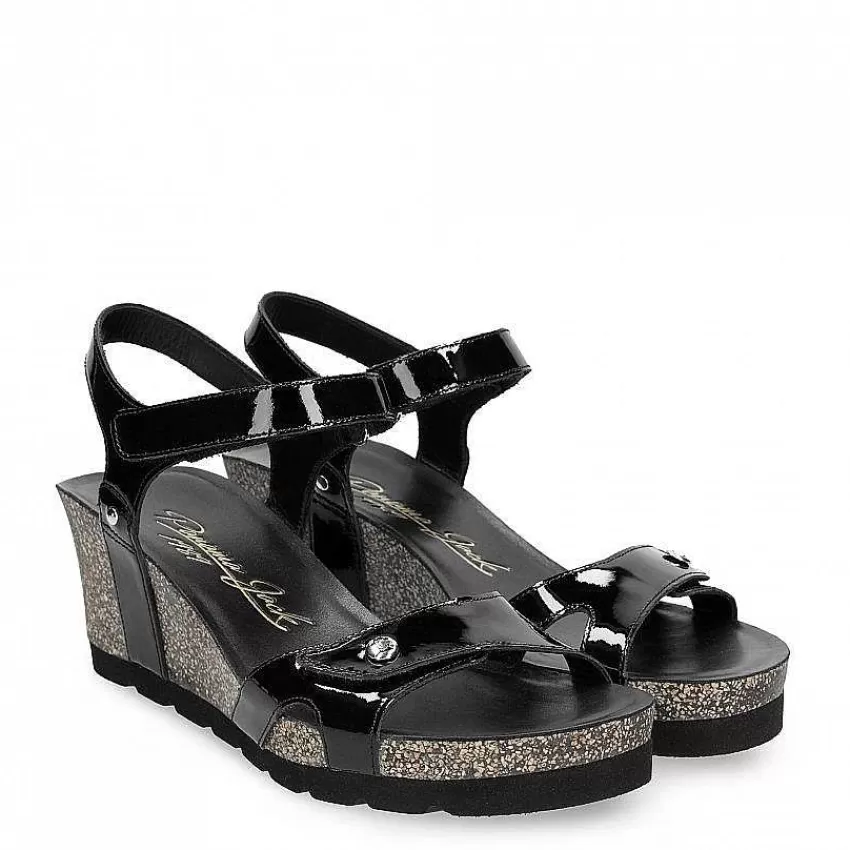 Sandalias CuñaCierre De Velcro.Charol Negro.Forro De Piel.Plantilla Anatómica.