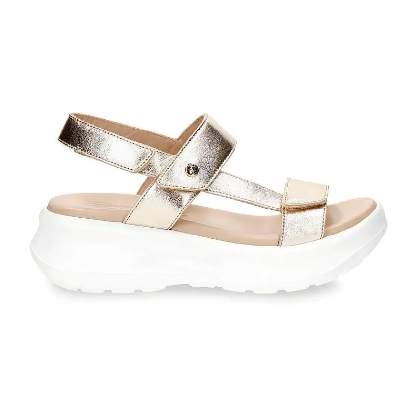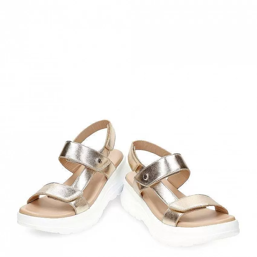 Sandalia Plana MujerCierre De Velcro.Piel Napa En Color Dorado.Forro De Piel.Plantilla Anatómica. Suela De Poliuretano …