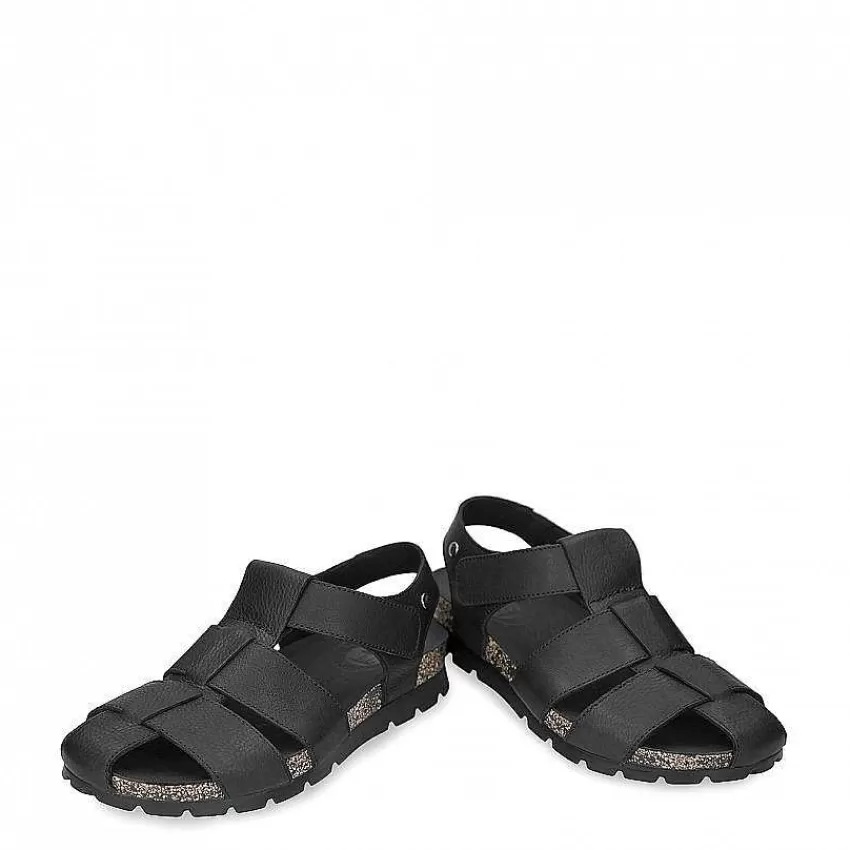 Sandalia HombreCierre De Velcro.Piel Napa Engrasada Negro Impermeable.Forro De Piel.