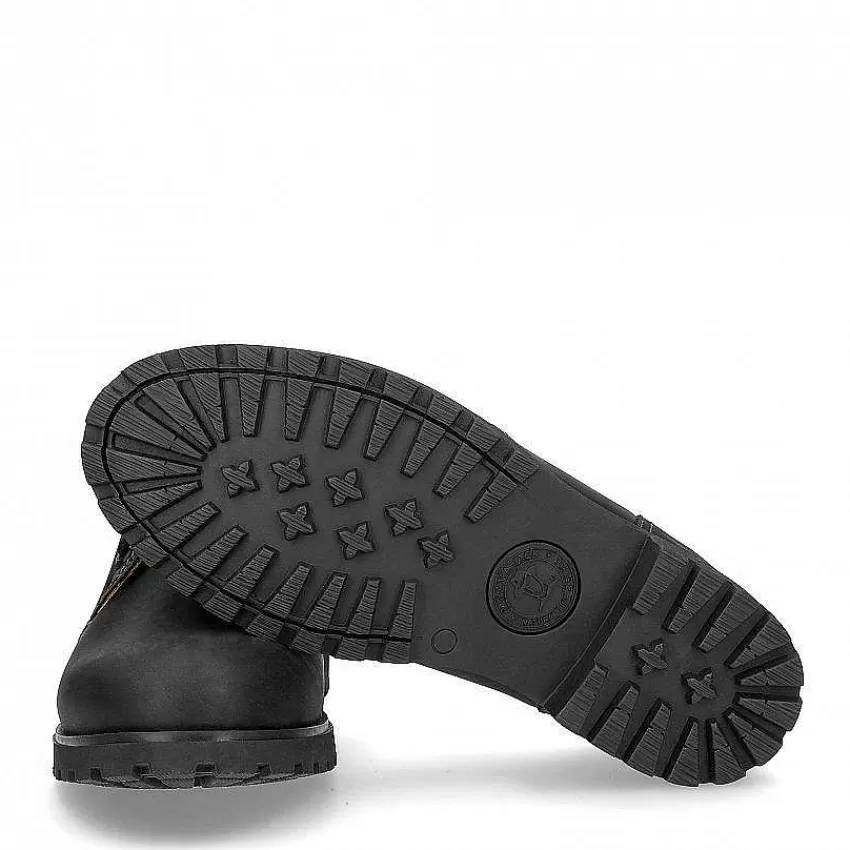 Zapatos Hombre LisoCierre Con Cordones.Piel Napa Engrasada Negro Impermeable.Forro Piel.