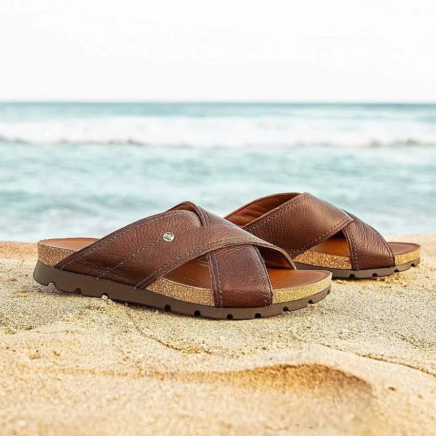 Sandalia HombrePiel Napa Engrasada Marrón Impermeable.Forro De Piel.Plantilla Anatómica.