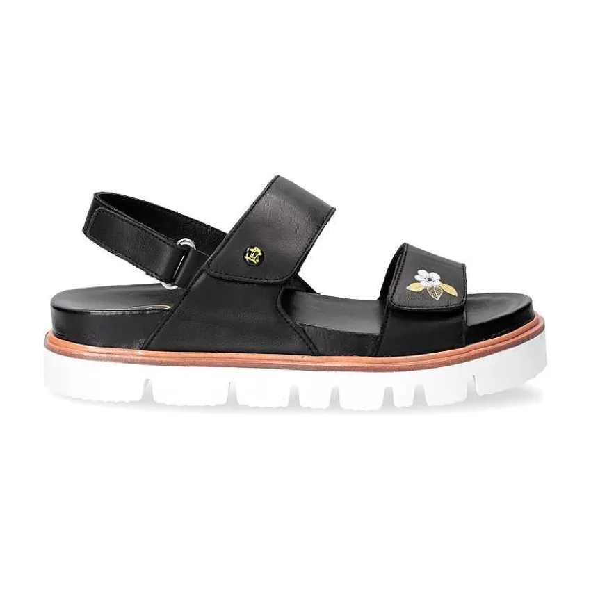 Sandalia Plana MujerCierre De Velcro.Piel Napa Negro.Forro De Piel.Plantilla Anatómica.Suela De Eva Adhesiva, Ligera, F…