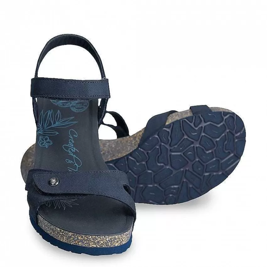 Sandalias De CuñaCierre De Velcro.Piel Nobuck Azul Marino Impermeable.Forro De Piel. Plantilla Anatómica.Suela De Eva …