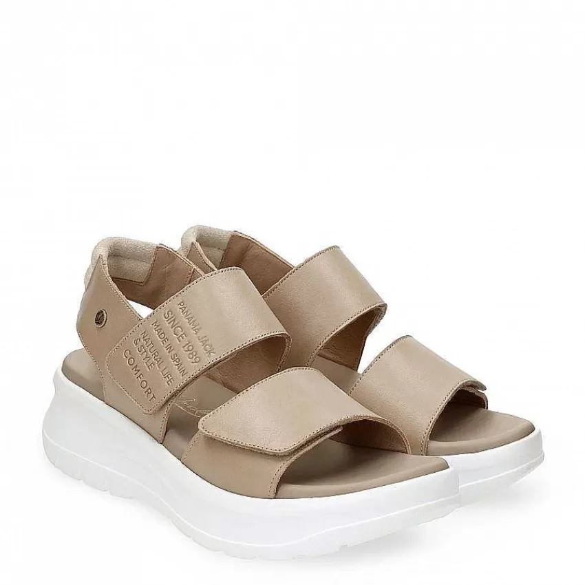 Sandalia Plana MujerCierre De Velcro.Piel Napa Color Topo.Forro De Piel.Plantilla Anatómica.Suela De Poliuretano Flexib…