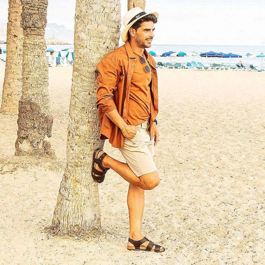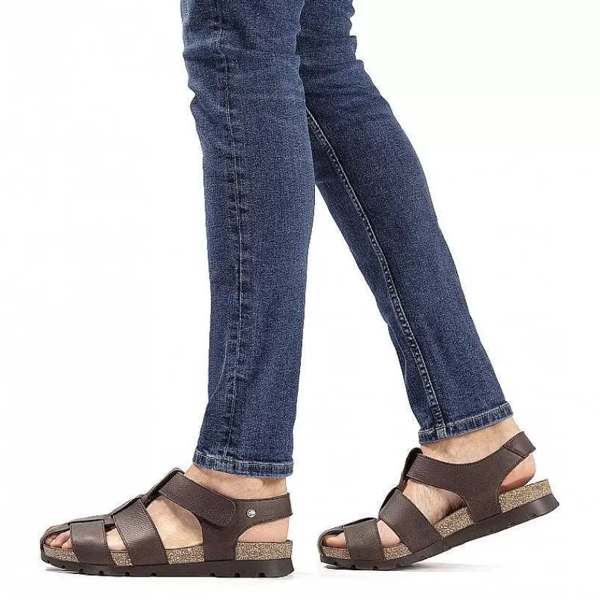 Sandalia HombreCierre De Velcro.Piel Napa Engrasada Marrón Impermeable.Forro De Piel.