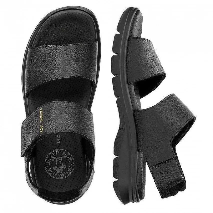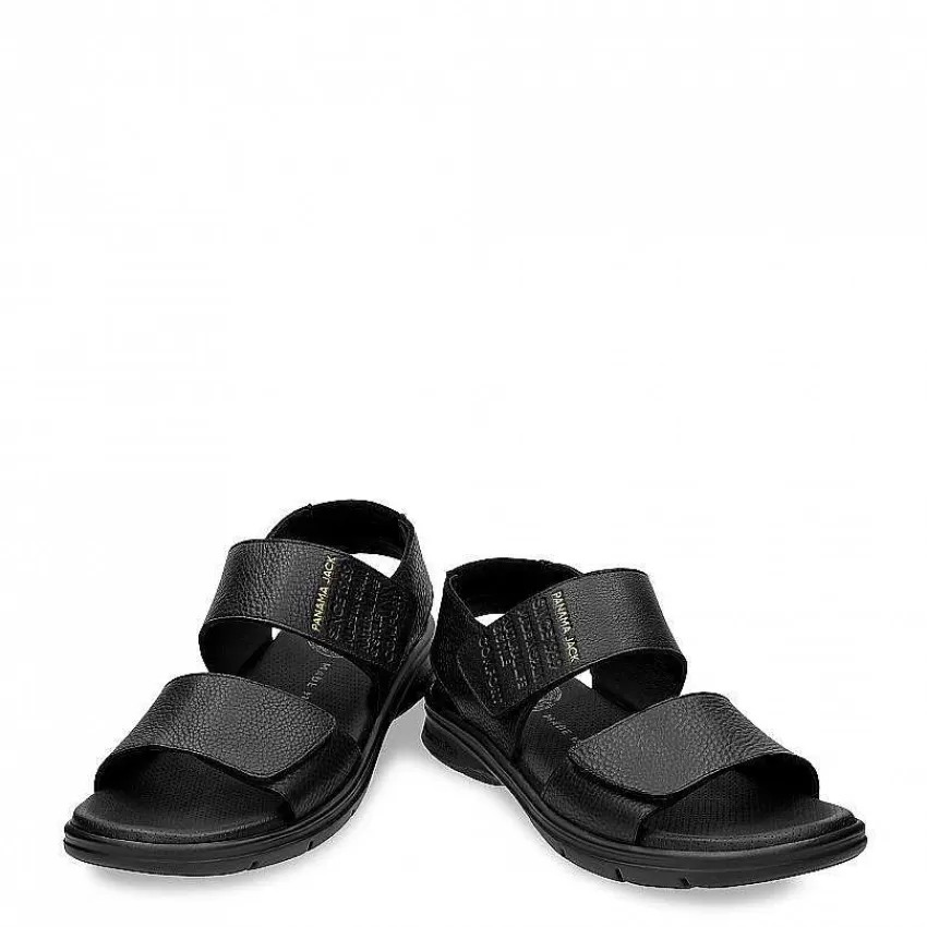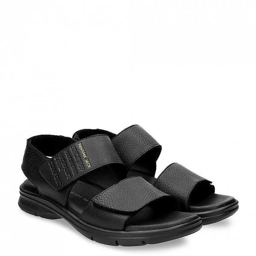 Sandalia HombreCierre De Velcro.Piel Napa Engrasada Negro Impermeable.Forro De Piel.
