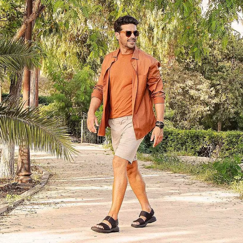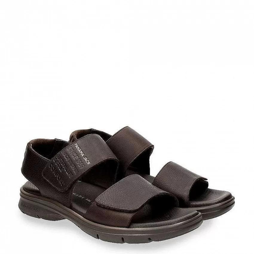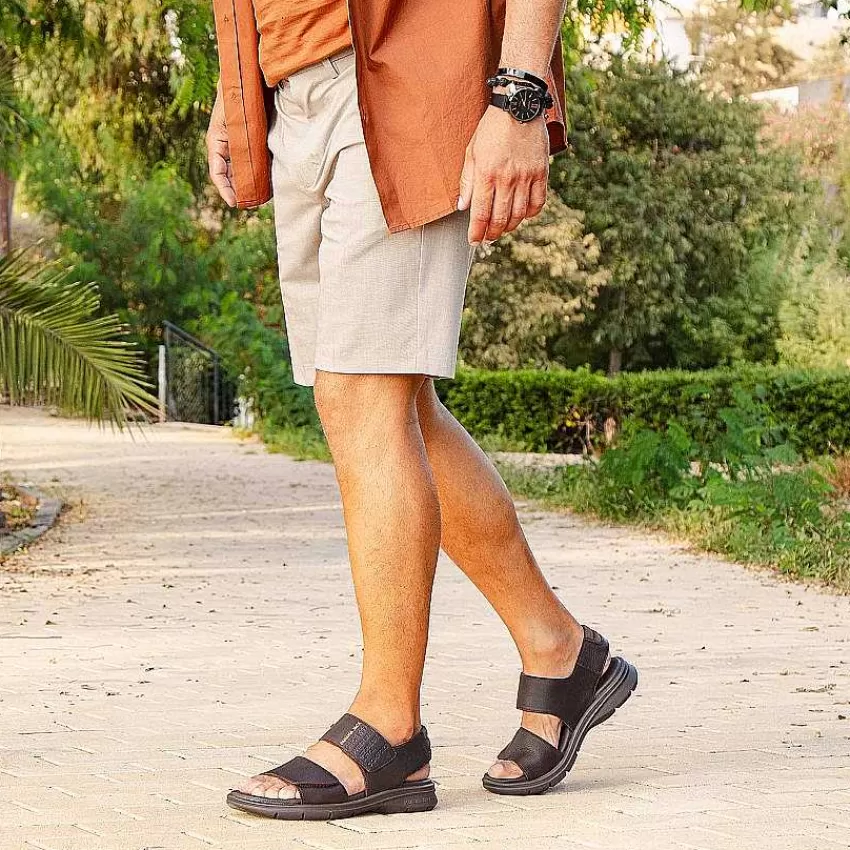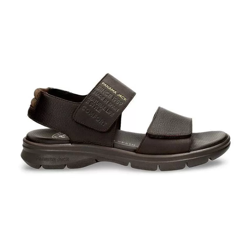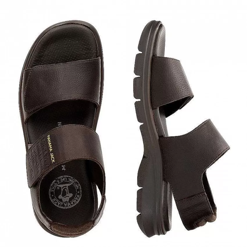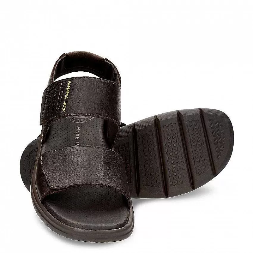 Sandalia HombreCierre De Velcro.Piel Napa Engrasada Marrón Impermeable.Forro De Piel.