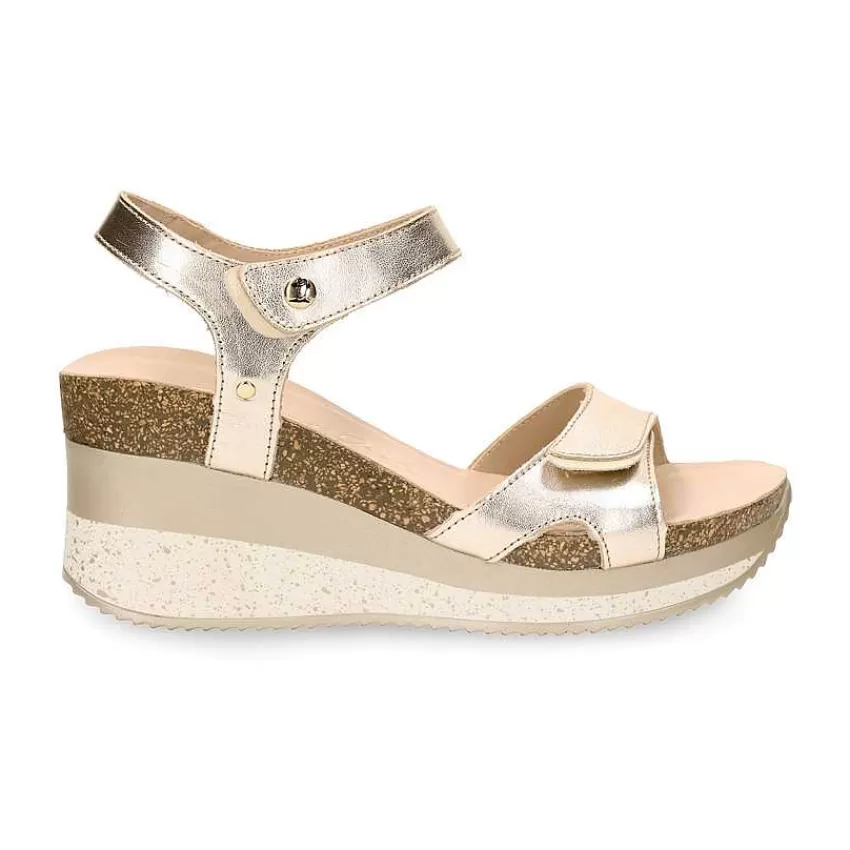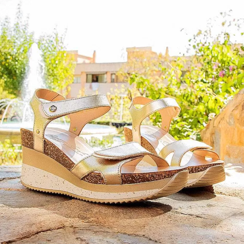 Sandalias Con CuñaCierre De Velcro.Piel Napa En Color Dorado.Forro De Piel.Plantilla Anatómica.Suela De Poliuretano Fl…