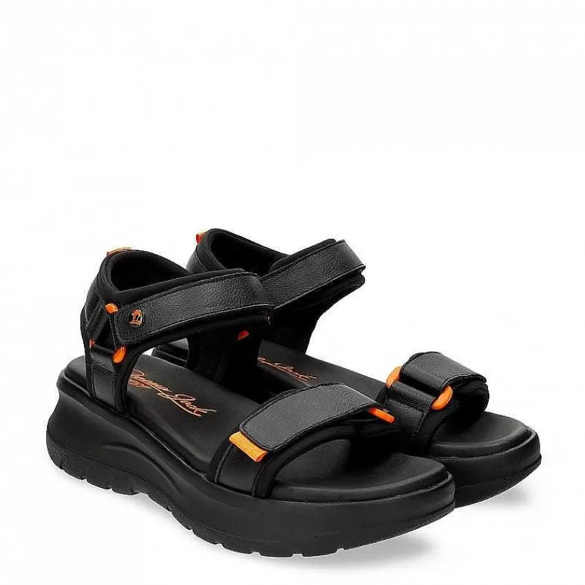 Sandalia Plana Para MujerCierre De Velcro.Piel Napa Negra Impermeable.Forro Interlook Sintético.Plantilla Anatómica.Su…