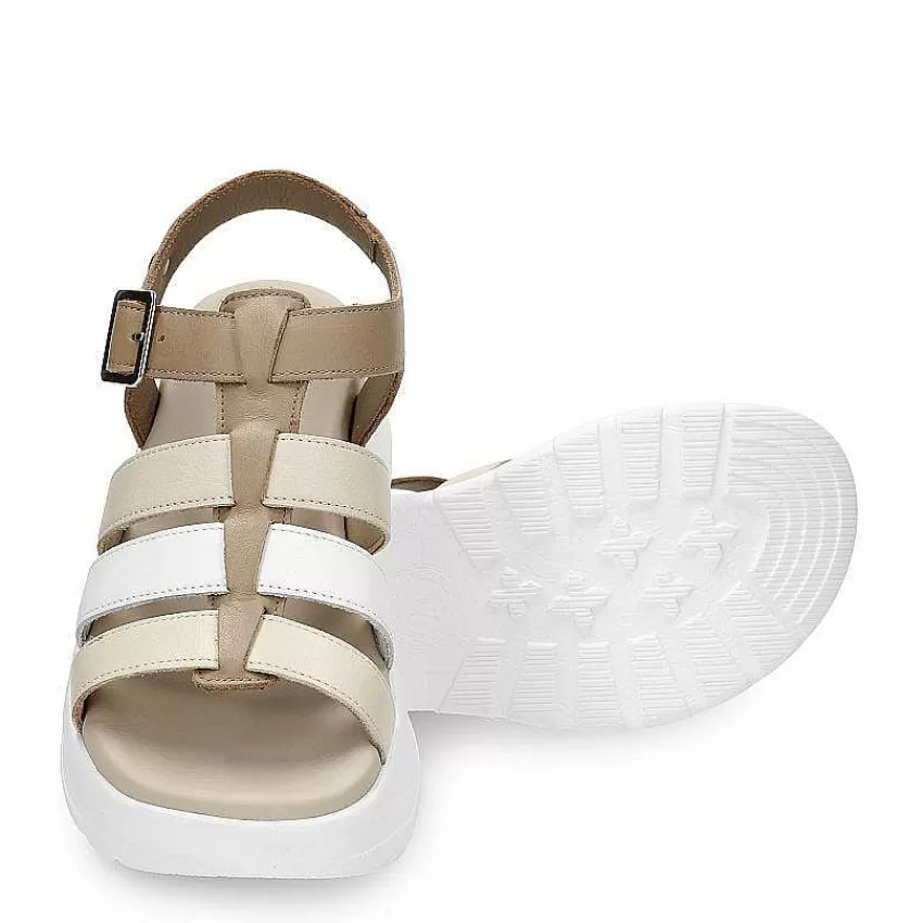 Sandalia Plana MujerCierre Con Hebilla.Piel Napa Color Topo.Forro De Piel.Plantilla Anatómica.Suela De Poliuretano Flex…