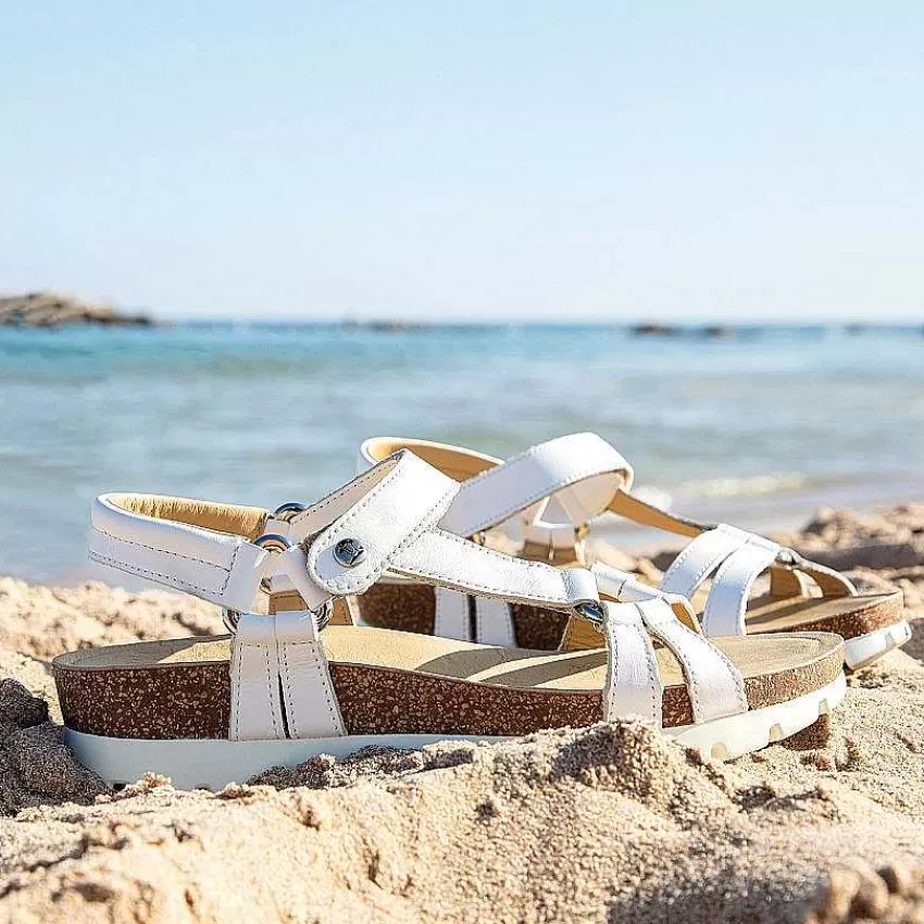 Sandalia Plana MujerCierre De Velcro.Piel Napa Blanco.Forro De Piel.Plantilla Anatómica.Suela De Poliuretano Flexible Y…