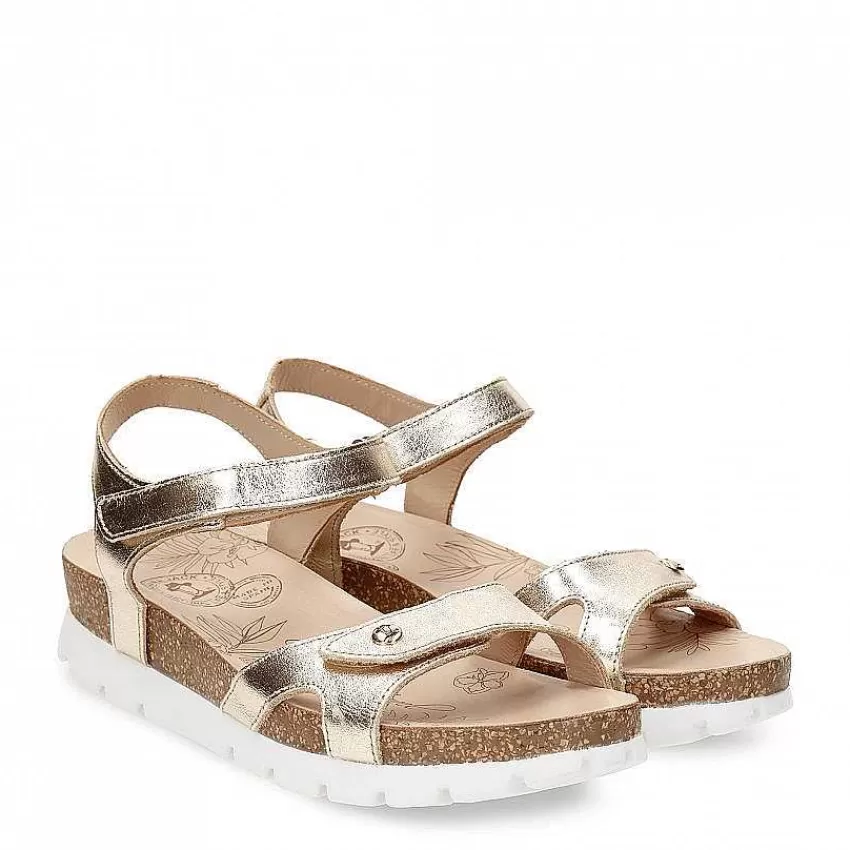 Sandalia Plana MujerCierre De Velcro.Piel Napa En Color Dorado.Forro De Piel.Plantilla Anatómica. Suela De Poliuretano …