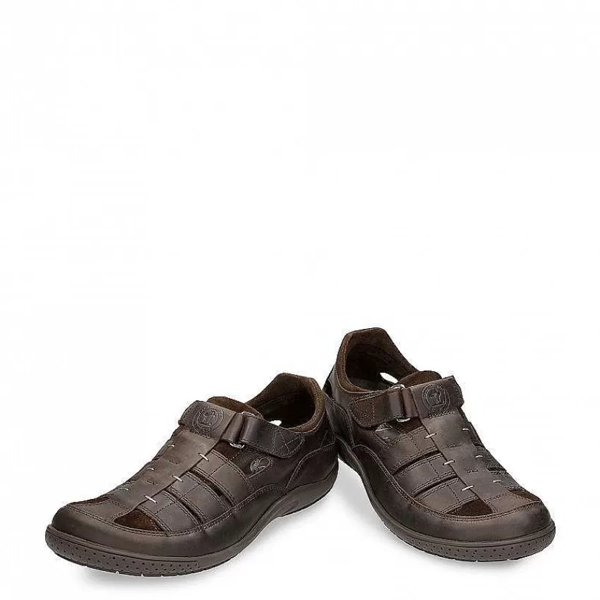 Zapato De Hombre SemiabiertoCierre De Velcro.Piel Napa Engrasada Marrón.Forro Interlook Sintético.Anatómico Y Plantil…