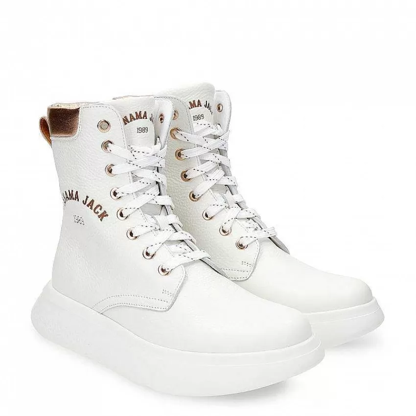 Botines Mujer LisoCierre Con Cordones.Piel Napa Blanca Impermeable.Forro Piel.Plantilla Anatómica Y Extraíble.Suela De…