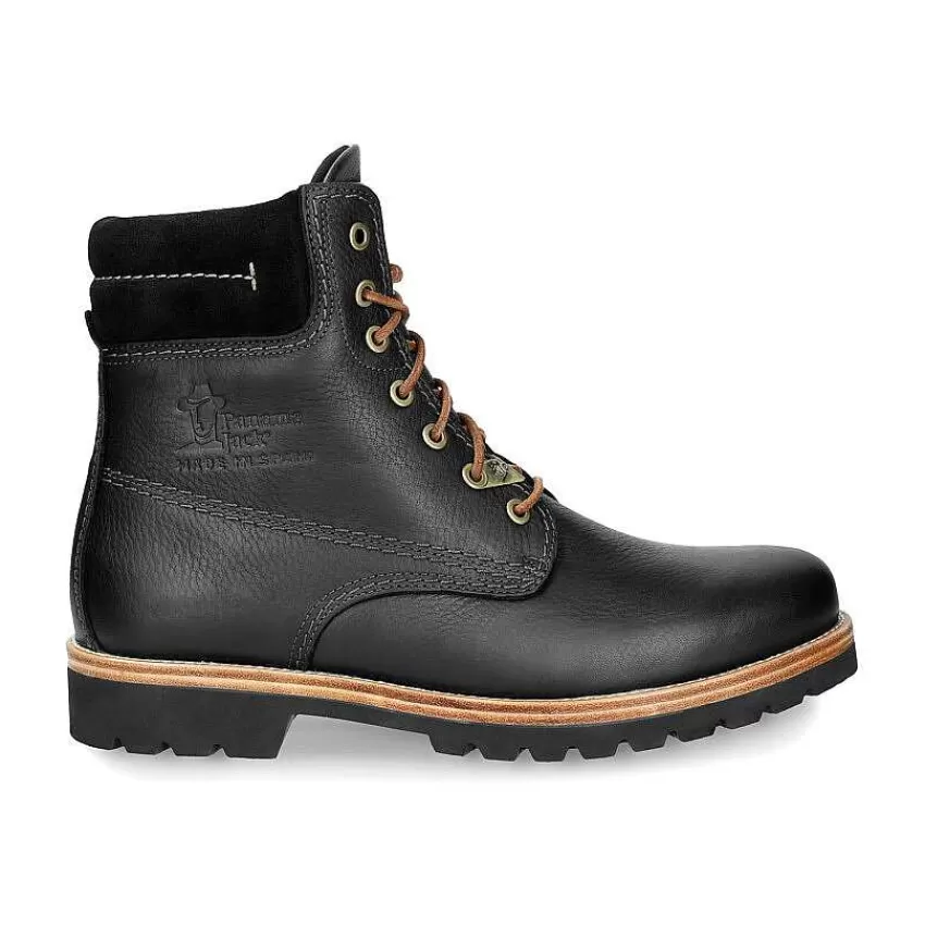 Botas Hombre LisasCierre Con Cordones.Piel Napa Engrasada Negro Impermeable.Forro Piel.