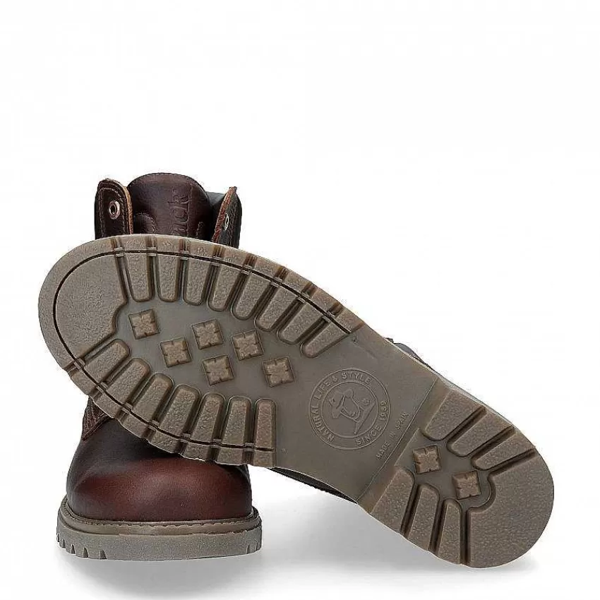 Botas Lisas HombreCierre Con Cordones.Piel Napa Engrasada Castaño Impermeable.Forro De Piel.