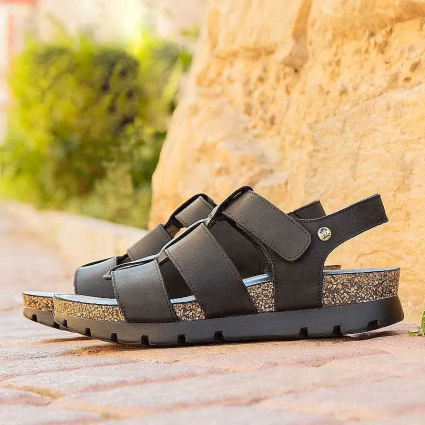 Sandalia Plana Para MujerCierre De Velcro.Piel Napa Engrasada Negro.Forro De Piel.Plantilla Anatómica.