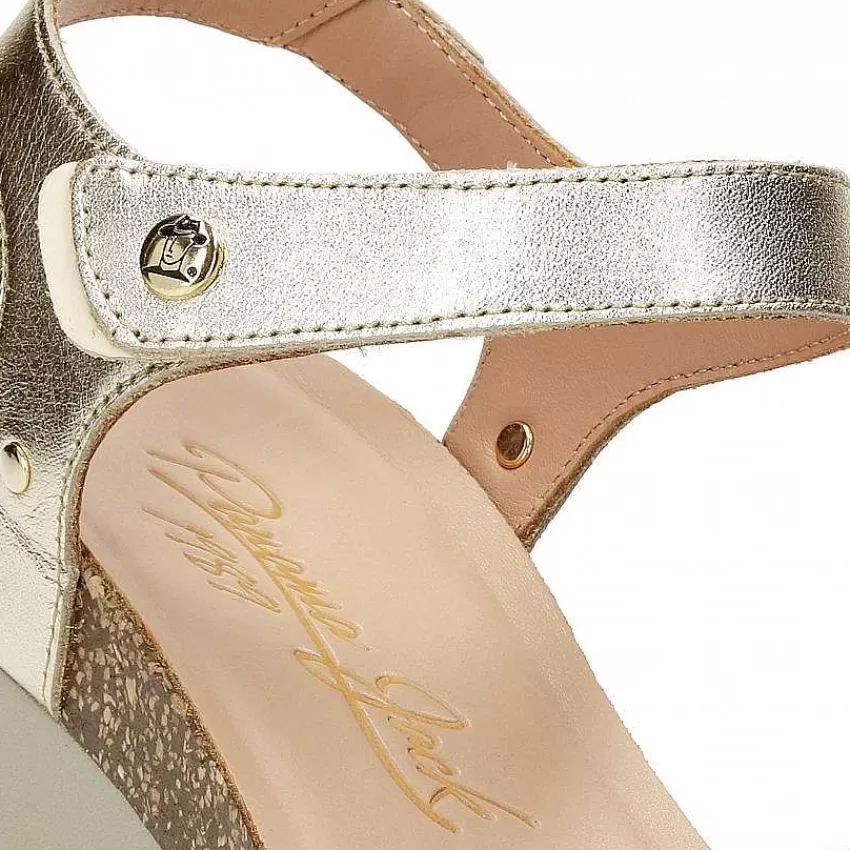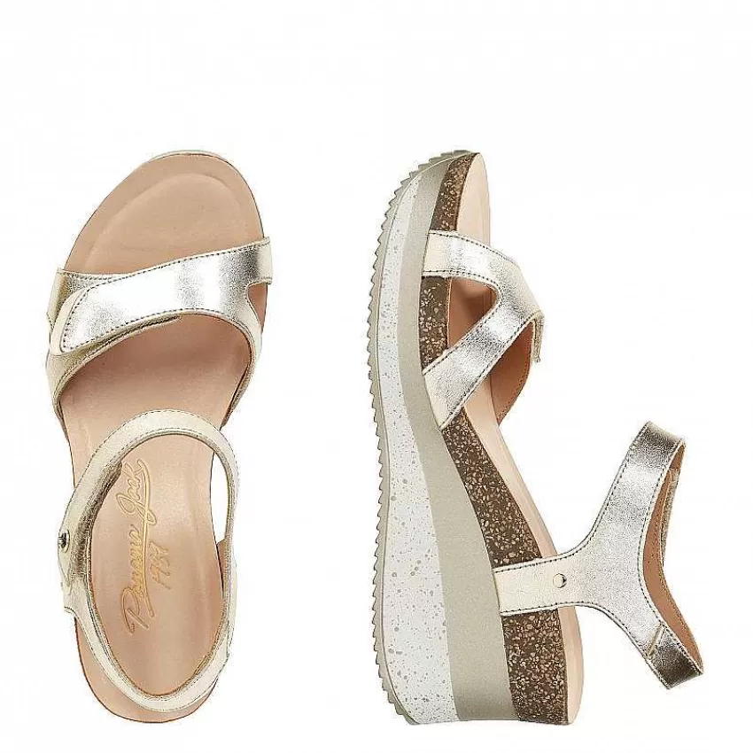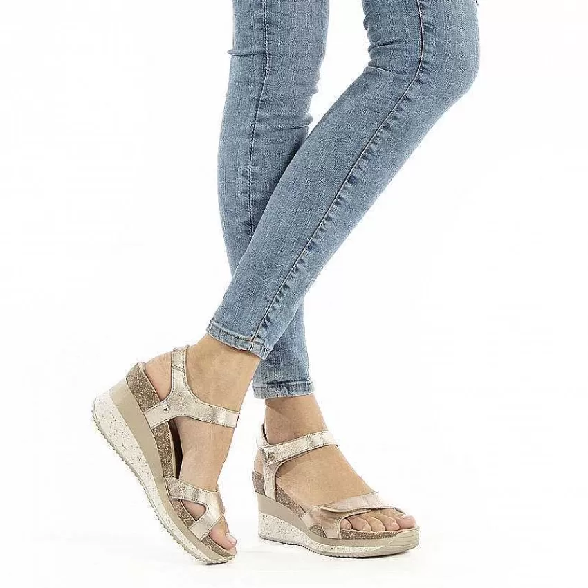 Sandalias Con CuñaCierre De Velcro.Piel Napa En Color Dorado.Forro De Piel.Plantilla Anatómica.Suela De Poliuretano Fl…