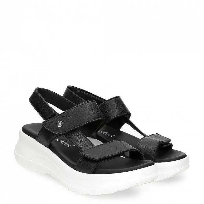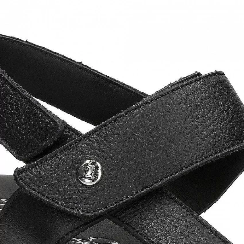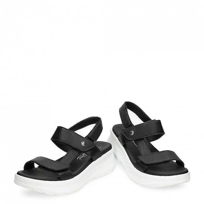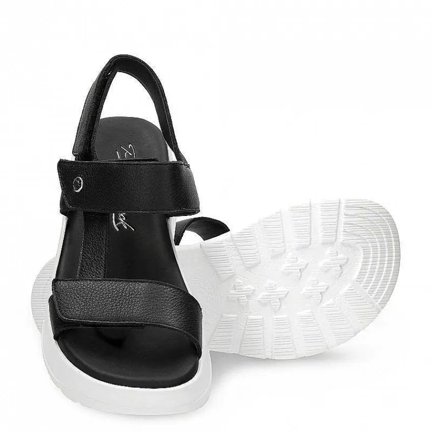 Sandalia Plana Para MujerCierre De Velcro.Piel Napa Negro Impermeable.Forro De Piel. Plantilla Anatómica.Suela De Poliu…